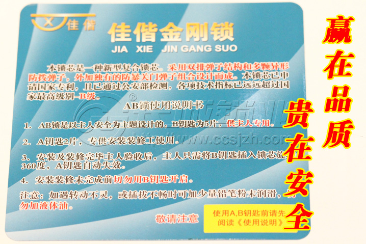 佳偕--超B级金刚锁芯